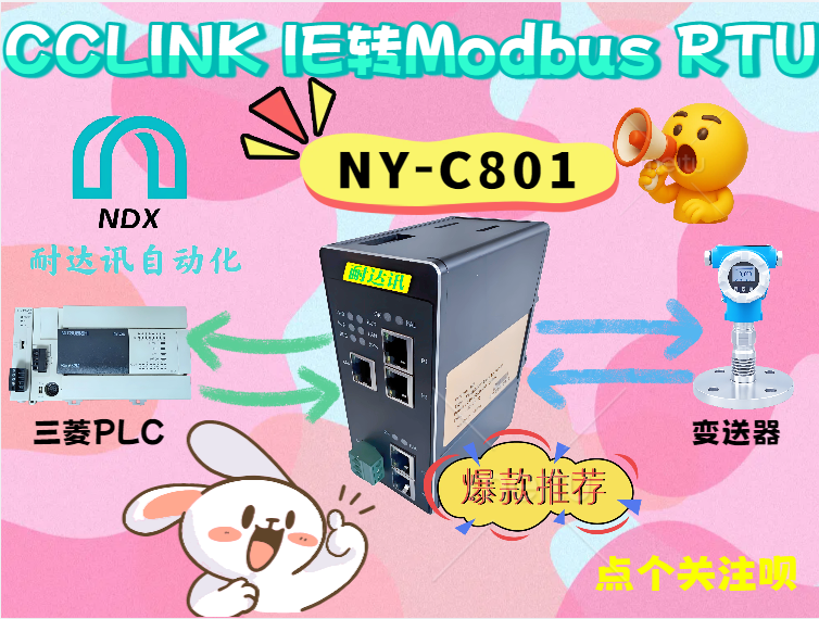 HELLO,水处理行业的朋友们,大家好!在日常工作中,我们是不是经常遇到这样的场景:现场的PLC是三菱的,走的是高速、大容量的CC-Link IE现场网络,但采购回来的各种变送器——比如pH计、浊度仪、流量计——却清一色是Modbus RTU网关接口。这两种协议就像是“鸡同鸭讲”,怎么让它们顺畅沟通,成了项目调试中的一个不大不小却又相当磨人的难题。