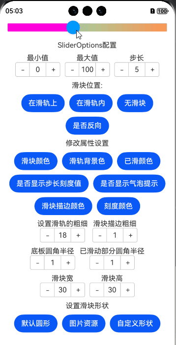 使用说明: 1.使用Slider需要配置基本属性SliderOptions,全局定义,可以动态修改,直观看到变化