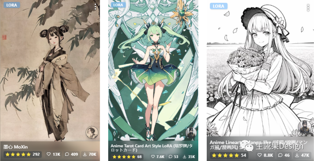 从你想画的风格(写实、二次元、卡通盲盒等)来选择大模型,再搭配合适的Lora。