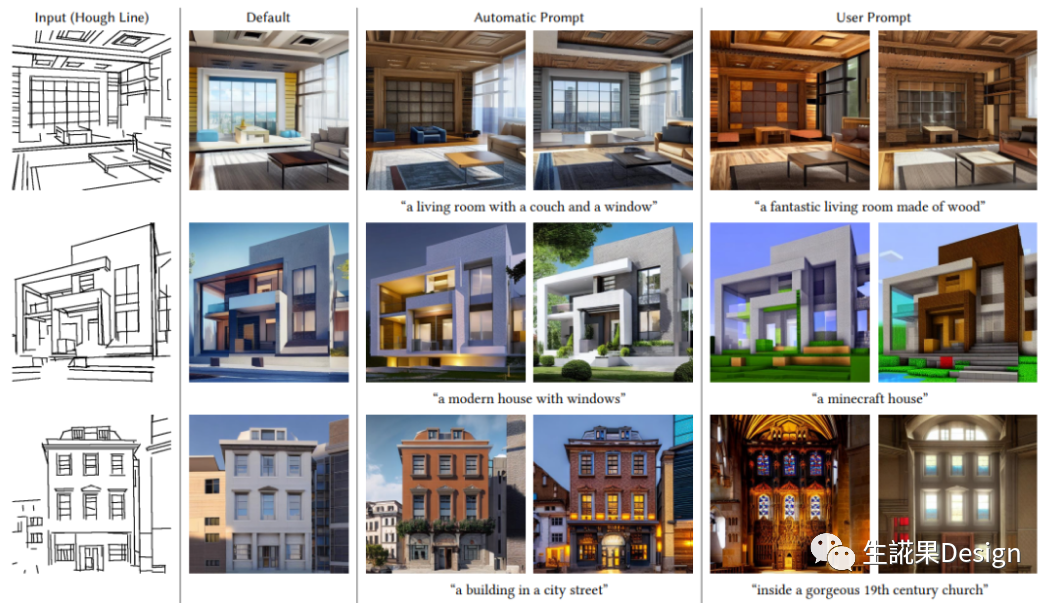 但是它不适用于处理非刚性或弯曲的物体。MLSD适用于生成室内布局或建筑结构,因为它可以突出直线和边缘。用于此预处理器的最佳模型是control_sd15_mlsd。