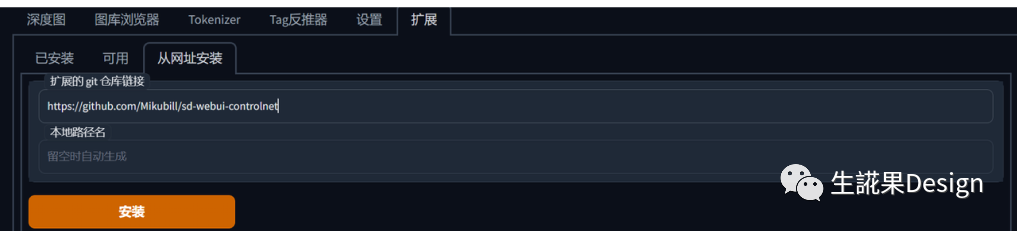 从github上找到并把网址填到扩展里安装,安装完后记得点击 Apply and restart UI