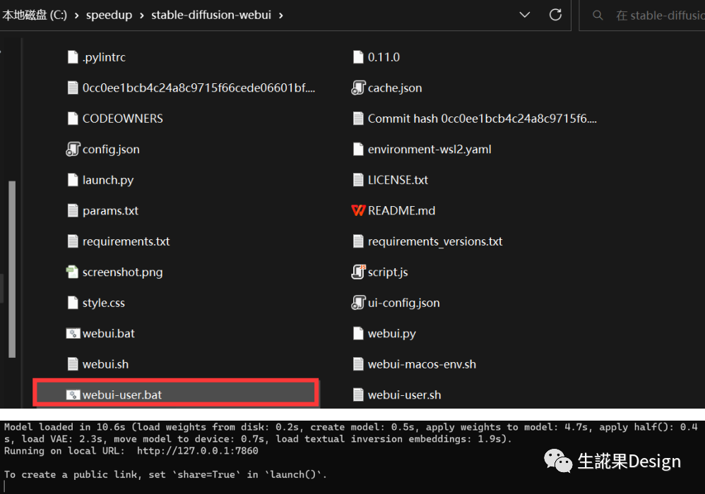进入SD安装文件夹,双击 webui-user.bat,待其加载完成方可使用浏览器(Chrome/Edge)登录默认的加载IP 127.0.0.1:7860