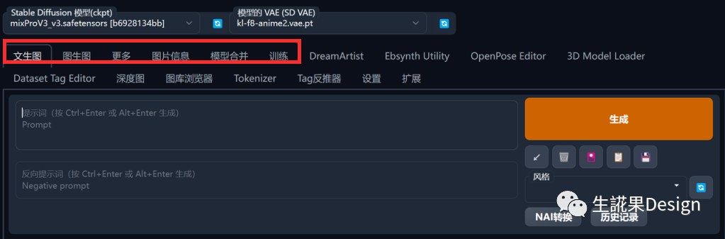 接下来是具体的使用方法简介。目前SD并不存在通行可靠的使用规范,每个人的电脑配置、需求都不尽相同,cpkd/Safetensors大模型、VAE、embeding、lora等AI模型、各类插件、提示词、输出参数的组合牵一发则动全身,需要大家有足够的耐心查阅插件开发者的说明文档和来自civitai等分享网站的使用心得,大家可以先到civitai上搜索中意的图例,复用原作者的出图提示词、参数和模型,再以此修改,这样学习的效果最为直观。