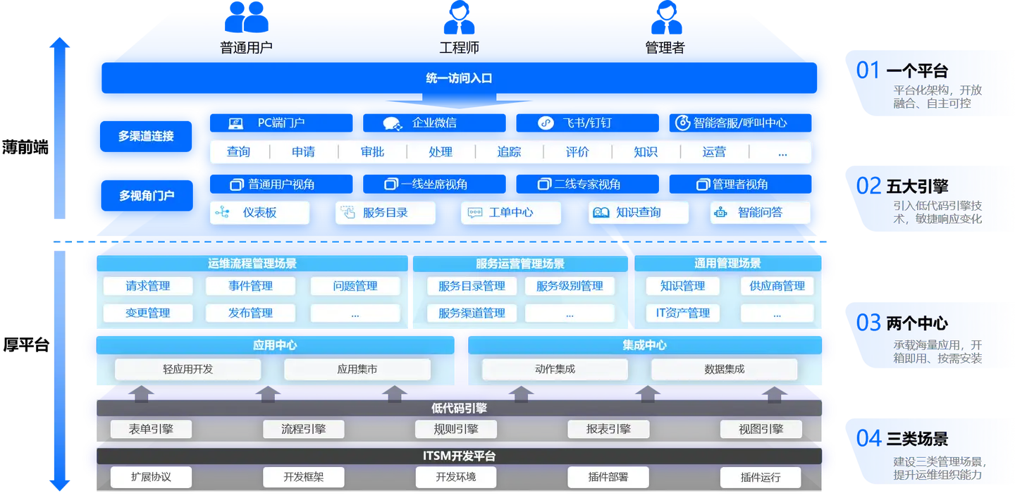 提供 “即开放又收敛”的 ITSM IT服务管理平台化能力: