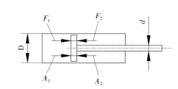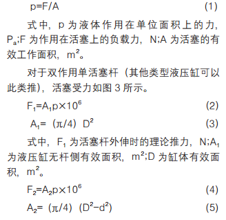 式中,F2 为活塞杆缩回时的理论推力,N;A2图 3 活塞杆伸缩示意为液压缸有杆侧有效面积,m2;d 为活塞有效面积,m2。