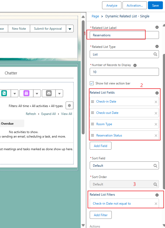 点击edit,将Dynamic Related List - Single(动态相关列表——单一)拖动到 Opportunities(业务机会)上方的 Related(相关)选项卡中。