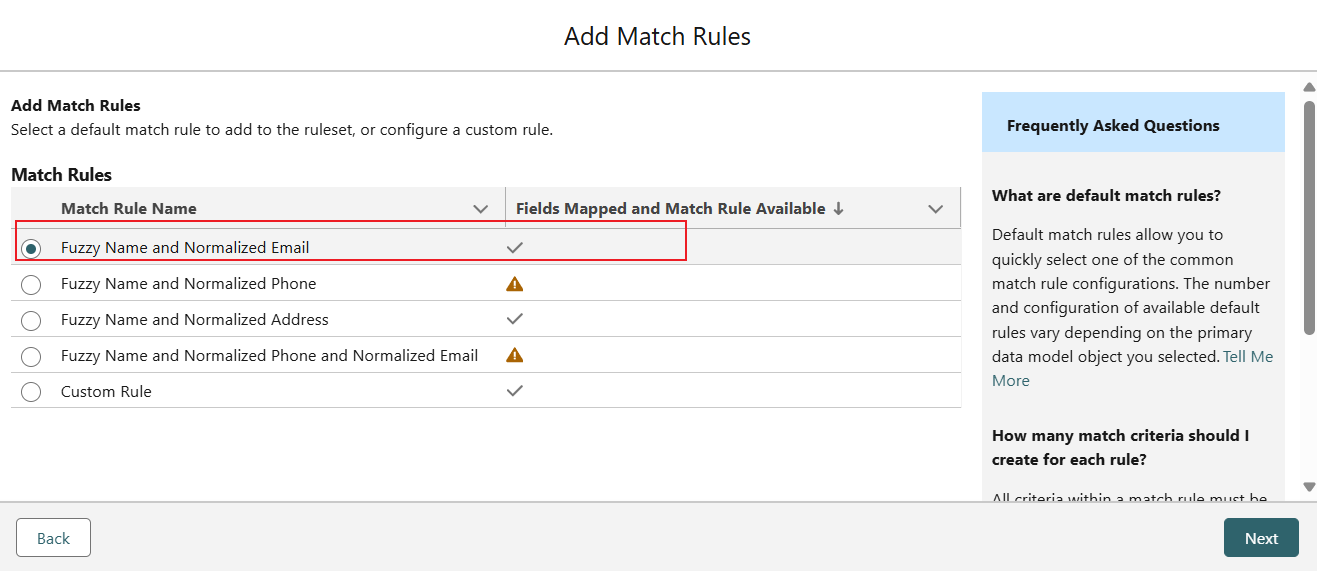 默认然后点击configure 选择Fuzzy Name and Normalized Email 点击next 点击save
