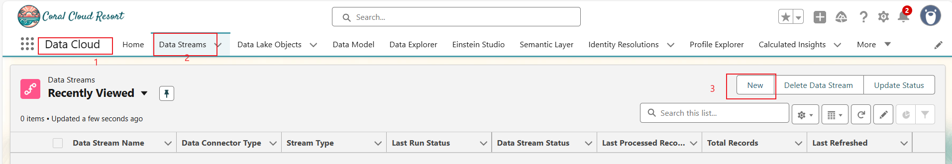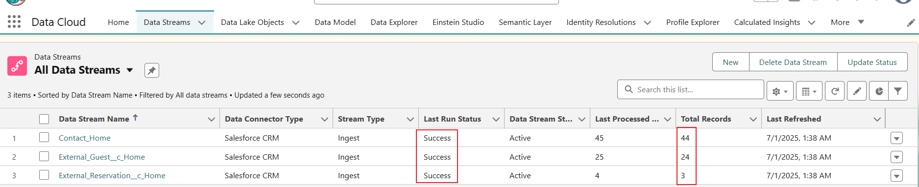 浏览器中刷新页面。所有数据流的 Last Run Status(上次运行状态)都需要显示Success(成功),且 Total Records(记录总计)列中需要有一个数字(非零)。