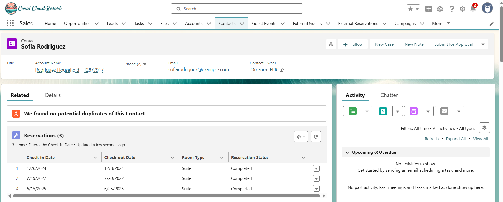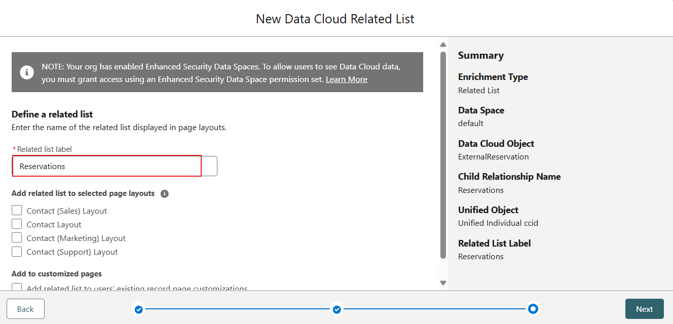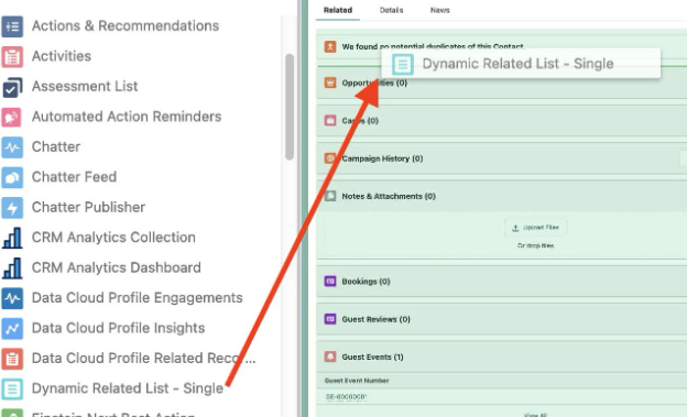 Data Cloud 相关列表已准备就绪!很好,让我们查看一下联系人记录,确认预订是否在列表中