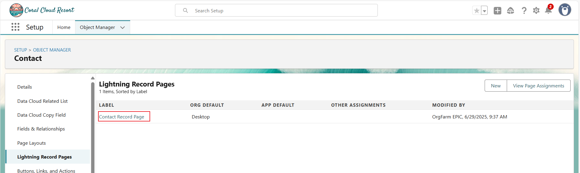 Data Cloud 相关列表已经存在,但还没有出现在任何页面布局中。因此,需要更新 Contact(联系人)的 Lightning 记录页面,并配置了它的显示方式。