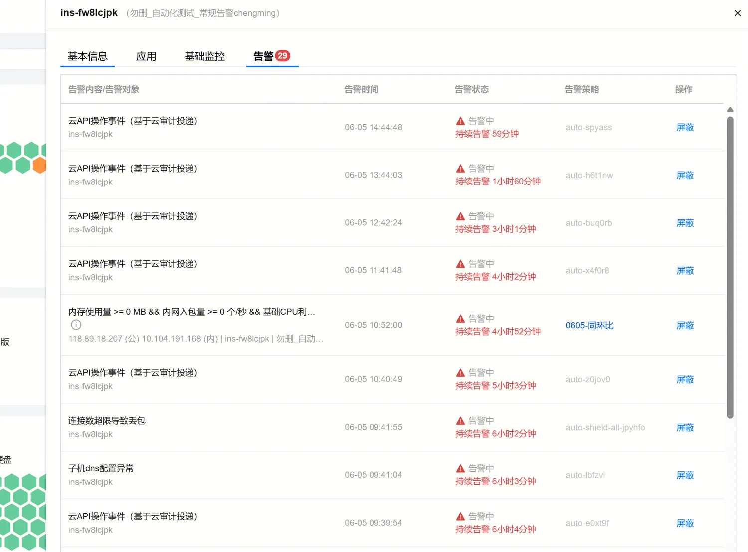 对于具体的云资源,也能够通过一次点击查询未恢复的告警详情。