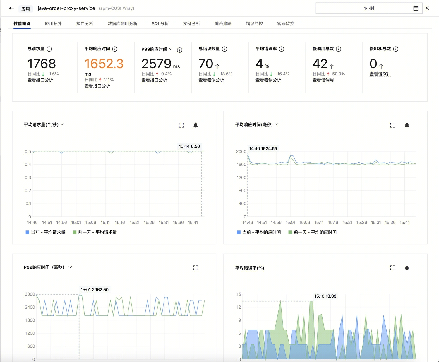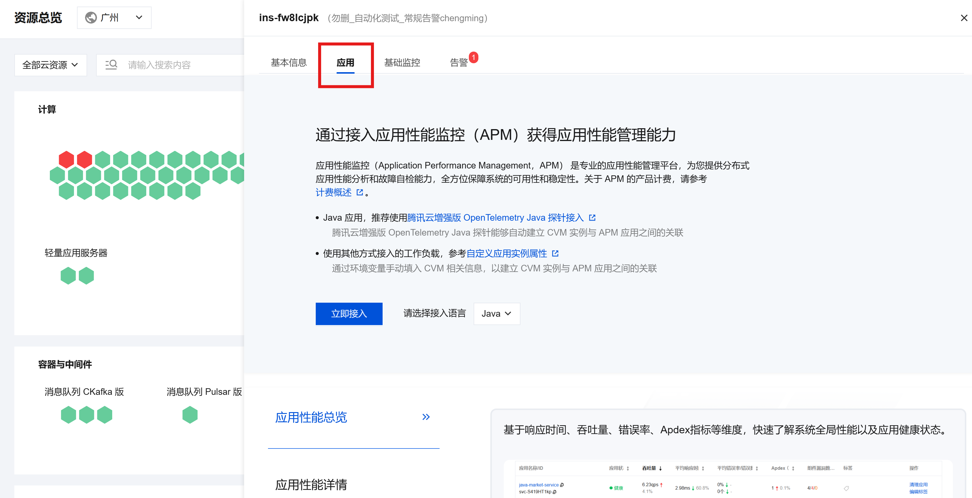 无需在云服务器控制台与 APM 控制台之间来回切换,直接通过资源总览页完成从资源异常,到应用影响,再到代码细节和外部依赖的全链路追溯。
