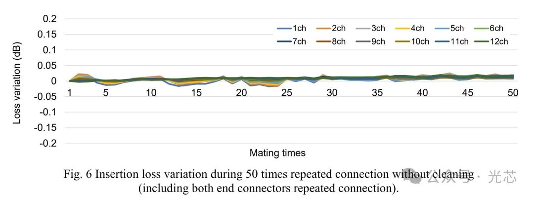 ② 稳定性测试:50次重复连接(无需清洁)的损耗变化<0.03dB,验证了连接器的高稳定性。