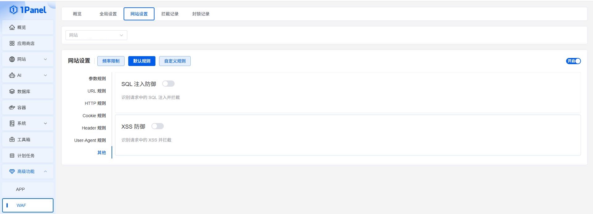 1.WAF 中的“网站设置”和“全局设置”需要同时开启才生效。