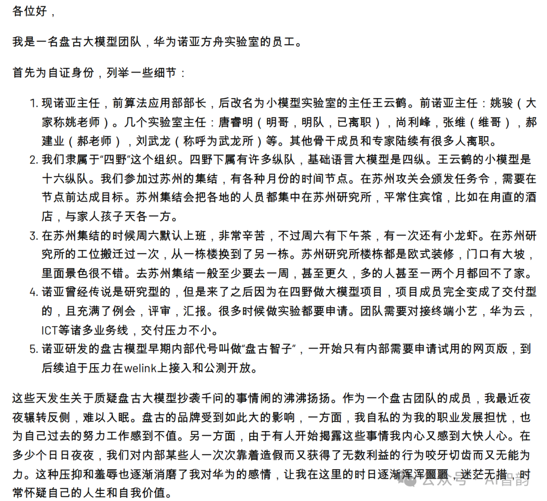 事件在7月6日凌晨急转直下。一篇署名“盘古团队前成员”的《盘古之殇:华为诺亚盘古大模型研发历程的心酸与黑暗》在GitHub引爆关注,一日内收获超2.5K星标。