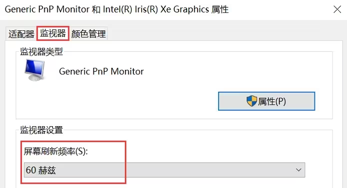 步骤4:在【监视器】中,找到【屏幕刷新频率】设置,并尝试调整到一个合适的值(如60Hz或75Hz);