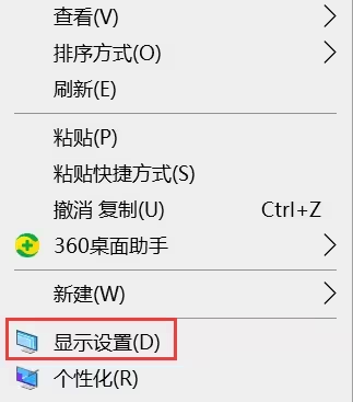 步骤1:右键点击桌面空白处,选择【显示设置】;