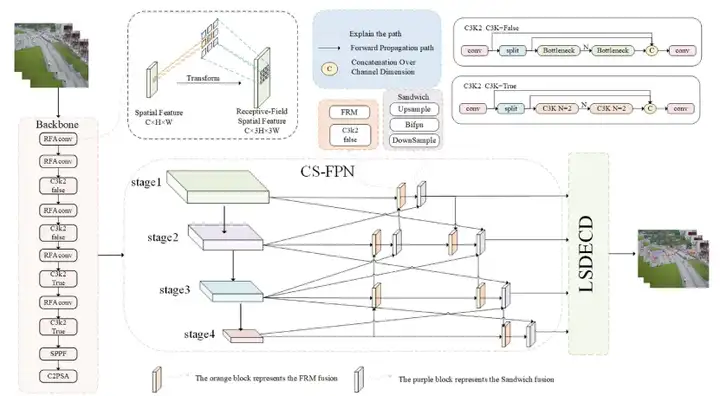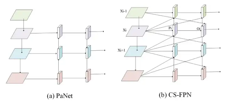 传统PANet在特征融合中采用逐层上采样和下采样的策略,易导致浅层细节在传递中逐步损失。CF-YOLO中提出的Cross-Scale Feature Pyramid Network(CS-FPN)旨在解决这一问题,构建更有效的小目标语义-细节联合表达路径。