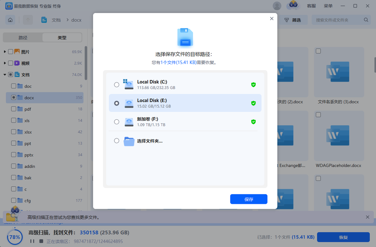 以易我数据恢复软件为例,恢复丢失文件一般可按以下步骤进行: