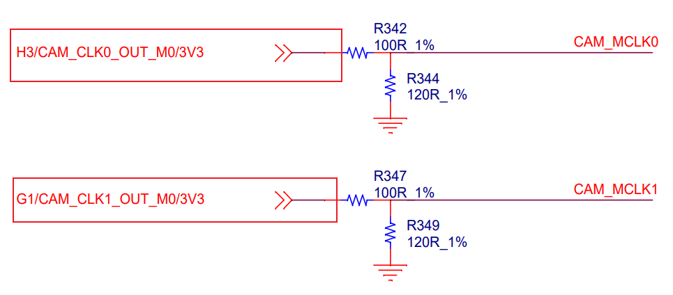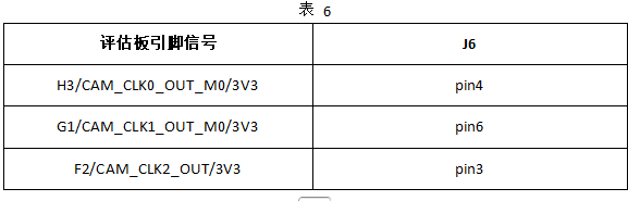 请将评估板R342、R347、R354空贴,然后通过飞线方式,将评估板引脚信号H3/CAM_CLK0_OUT_M0/3V3、G1/CAM_CLK1_OUT_M0/3V3、F2/CAM_CLK2_OUT/3V3端口,分别连接至TL7606I模块J6接口的pin4、pin6、pin3引脚,为TL7606I模块提供控制信号,连接关系如下表。