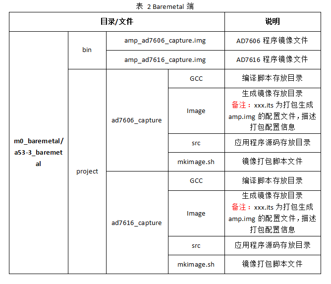表 2 Baremetal端