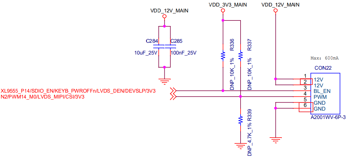请将评估底板BACK LIGHT接口(CON22)的12V(pin2)引脚通过飞线引出方式连接至TL7616P模块CON2接口的pin1引脚;将BACK LIGHT接口(CON22)的GND(pin6)引脚通过飞线引出方式连接至TL7616P模块CON2接口的pin2引脚,为TL7616P模块提供12V直流电源,连接关系如下表。