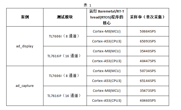 本文档AD采集案例测试结果如下表所示。