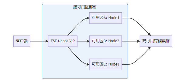 图解:TSE Nacos通过VIP实现客户端无感访问,后端节点跨AZ部署,共享高可用存储