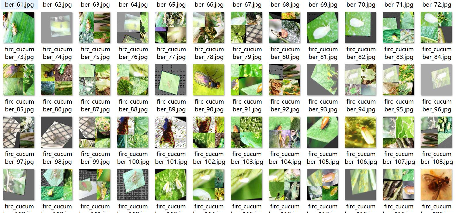 数据集中包含大量四张图拼接增强图片,病害主要涵盖黄瓜本体,黄瓜叶子病害以及黄瓜虫害检测3个方面