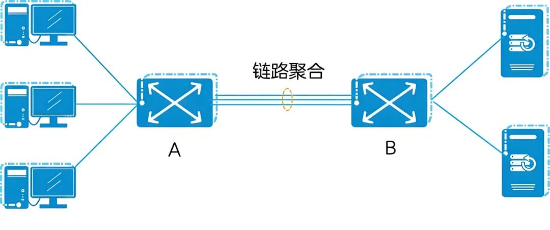 案例:文件服务器与核心交换机间配置4条万兆链路聚合,实现40Gbps带宽+链路冗余。