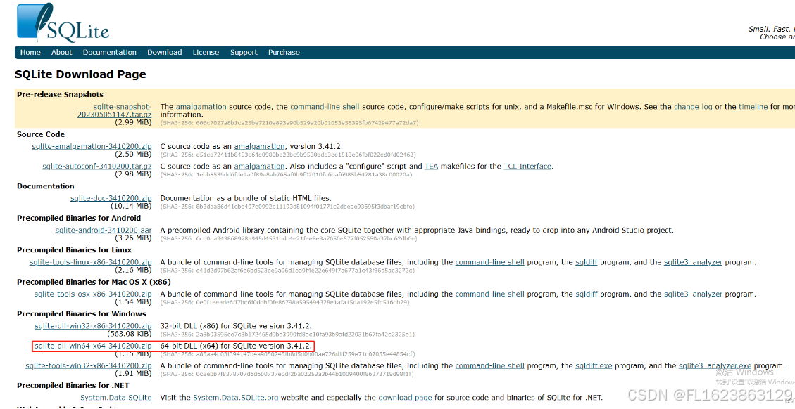 sqlite3官网: https://www.sqlite.org/index.html 下载