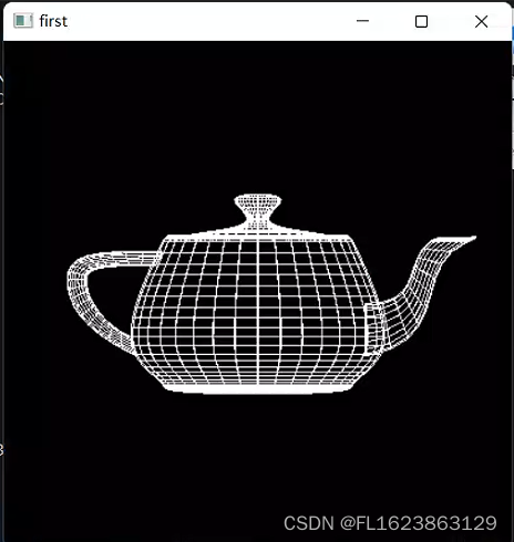 def drawFunc(): glClear(GL_COLOR_BUFFER_BIT) glRotatef(0.1, 0.1, 0.5, 0) glutWireTeapot(0.5) glFlush()