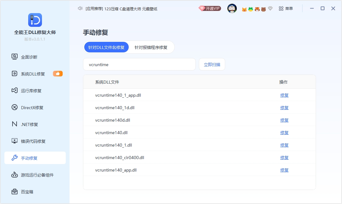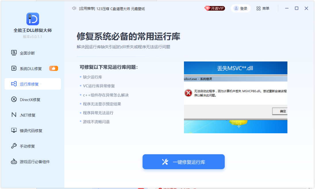 一键修复任何因dll缺失、软件不能运行的系统问题 MSVCP、DLL修复vcruntime、DLL修复、.Net Framework