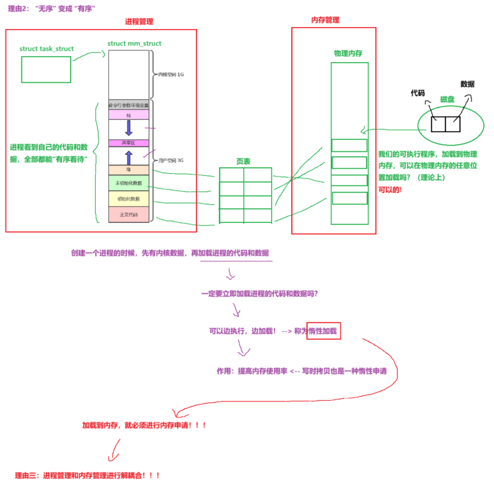 } __randomize_layout;进程 = 内核数据结构 + 代码和数据 有了现在的学习,我们清楚内核数据结构不止PCB,还有虚拟地址空间和页表(一种数据结构,建立映射关系)--> 进程 = 内核数据结构(PCB,虚拟地址空间和页表)+ 代码和数据。 要理解进程之间时互相独立的,就得说明内核数据结构+代码和数据是互相独立的:
