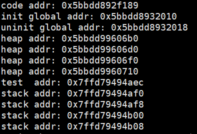 验证该程序地址空间确实是从低地址到高地址: