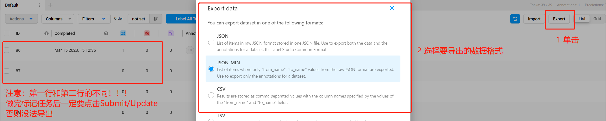 使用工具:label studio