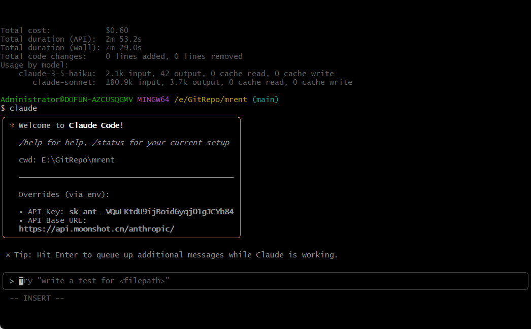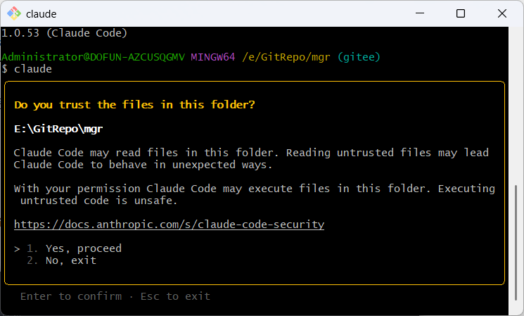 现在可以开始使用 Claude Code 了。在 Git Bash 中进入你的项目目录,输入指令即可: