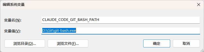 在安装 Claude Code 之前,我们需要先配置 Git-Bash.exe 的路径: