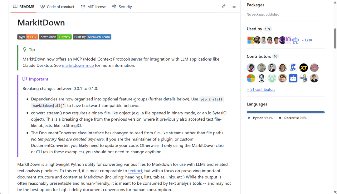 MarkItDown 作为微软推出的开源文档转换工具,在 AI 时代显得格外有价值。从最新的 0.1.0 版本可以看出,微软对这个项目投入了大量精力,不断优化性能和扩展功能。