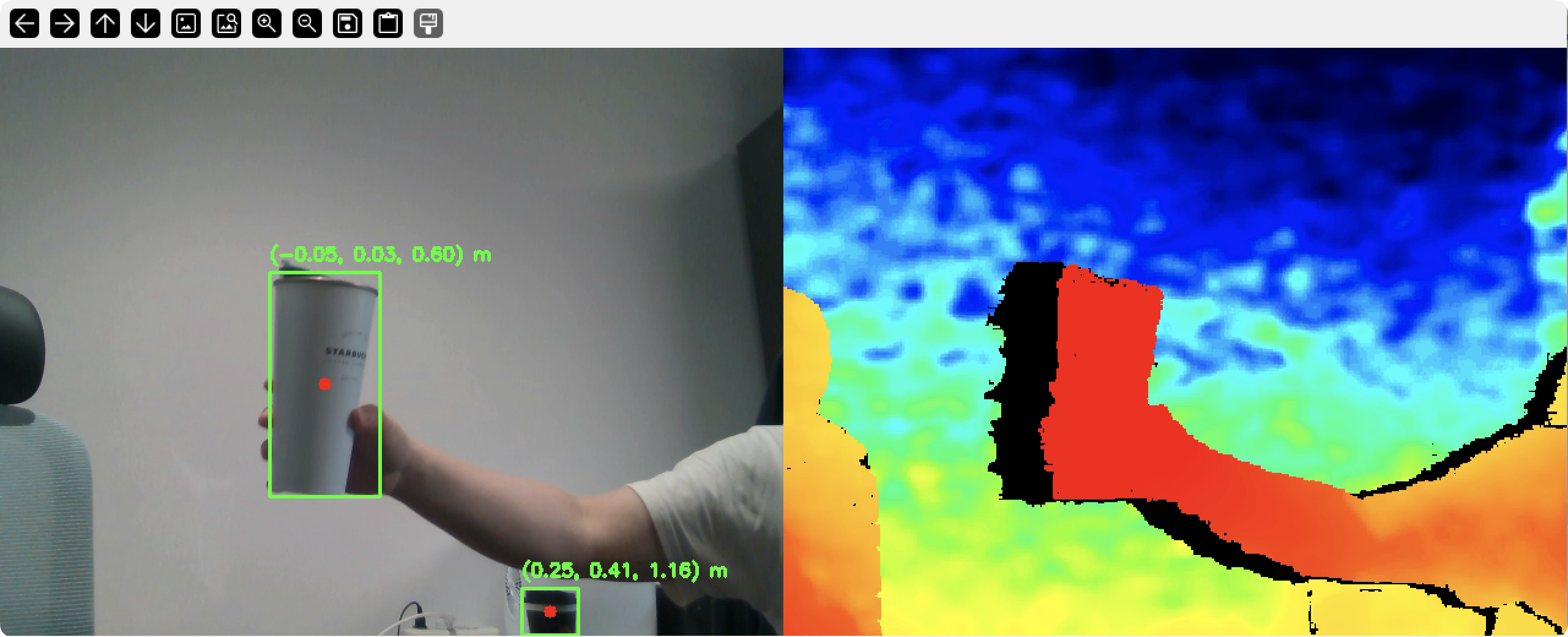 print(f"Cup detected at 3D position (x, y, z): {pos} meters")