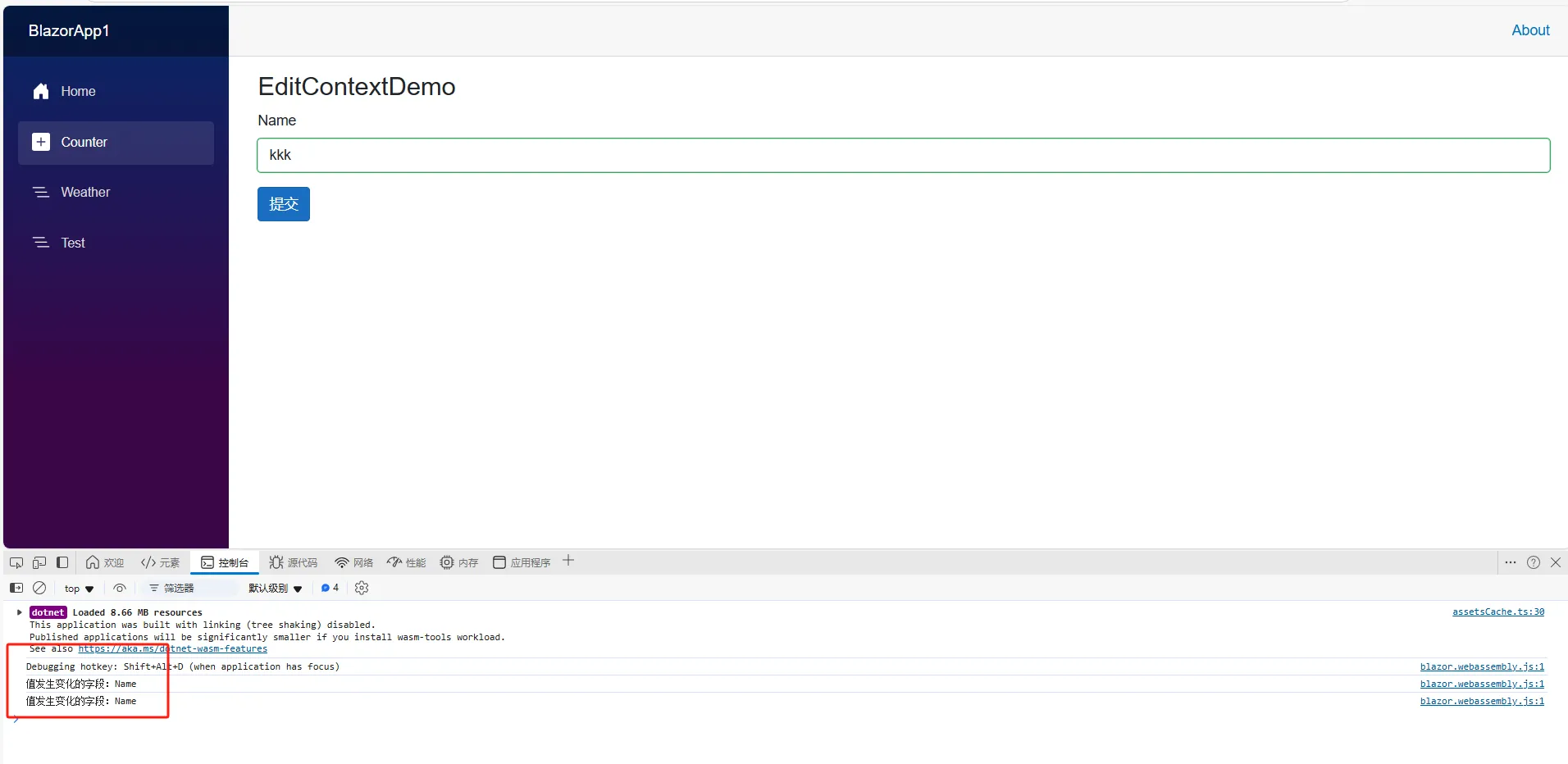 通过以上的方式我们就可以通过EditContext与属性进行绑定