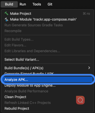 2、在菜单栏中,依次点击 Build > Analyze APK...