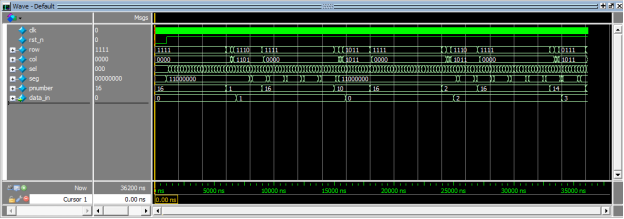 我们采用了4*4矩阵键盘扫描在键盘中按键数量较多时,为了减少I/O口的占用,通常将按键排列成矩阵形式。在矩阵式键盘中,每条水平线和垂直线在交叉处不直接连通,而是通过一个按键加以连接。这样,一个端口就可以构成4*4=16个按键,比之直接将端口线的应用于键盘多出了一倍,而且线数越多,区别越明显,比如再多加一条线就可以构成20键的键盘,而直接用端口线则只能多出一键(9键)。由此可见,我们在需要的键数比较多时,采用矩阵法来做键盘是合理的。