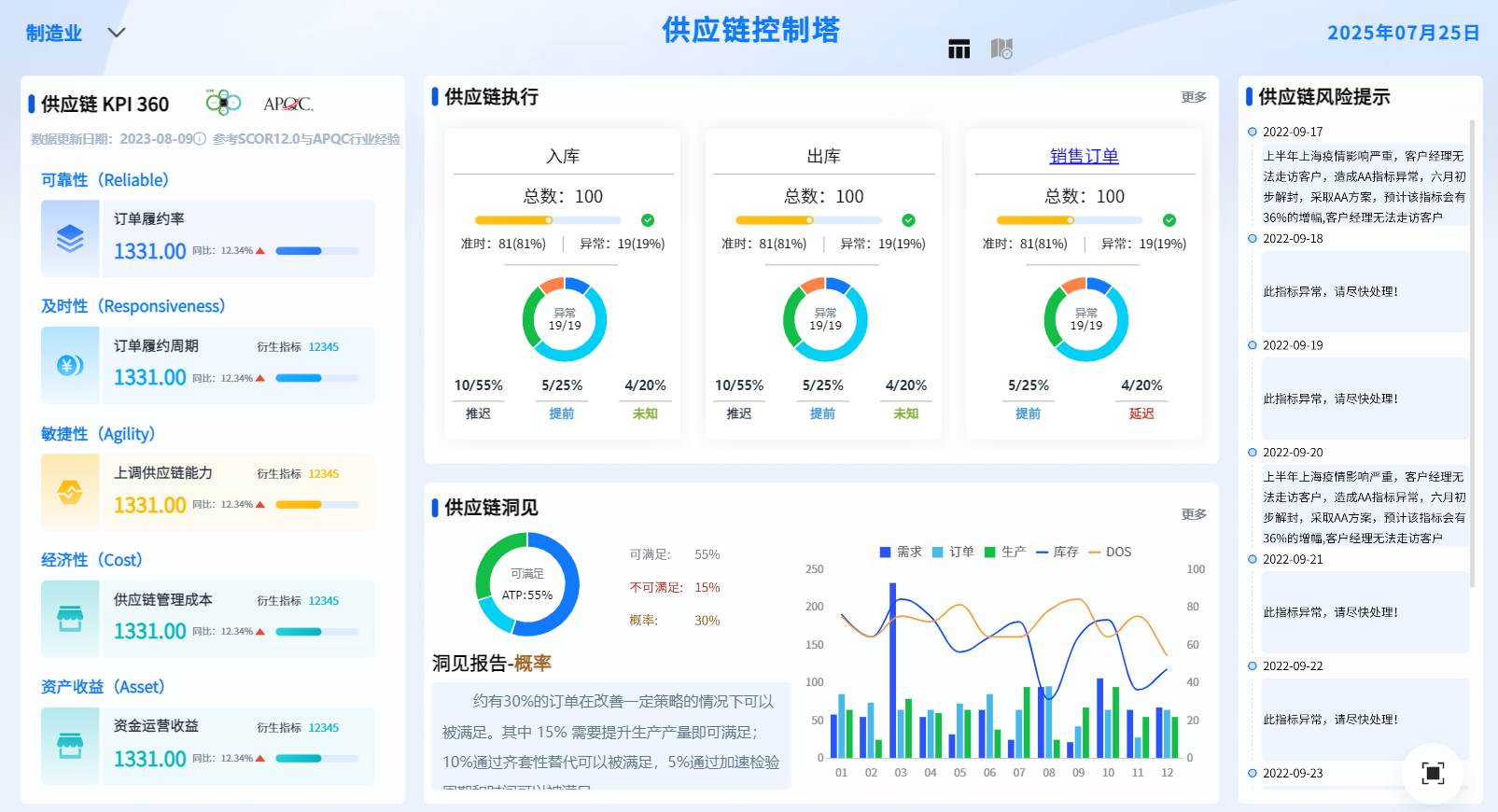 - 老板打开 BI 看板,客户投诉/订单履约率/库存周转一览无遗。