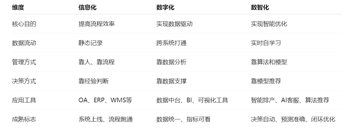 从“信息化”到“数字化”再到“数智化”,每一步背后对应的,不只是技术升级,更是思维方式、组织结构、管理逻辑的变化。