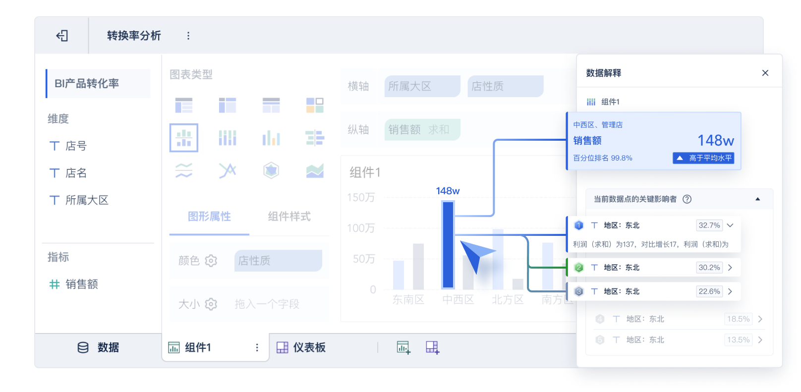 通过下钻式分析,一步步挖出真因,而不是凭猜想推结论。BI 的交互性就是优势。