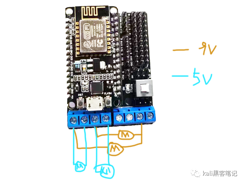 将esp8266与点击驱动板进行连接。效果如下 注意:电机电源输出范围 4.5