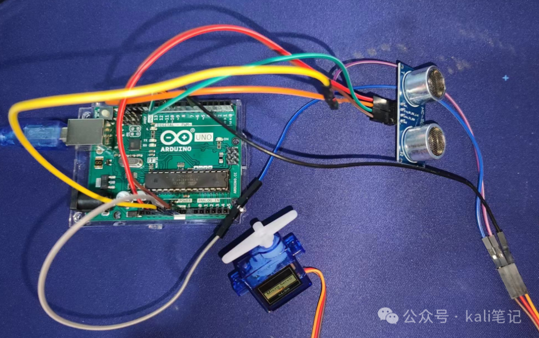Arduino配合超声波模块实现智能垃圾桶实验。当人靠近垃圾桶时,自动打开垃圾桶。