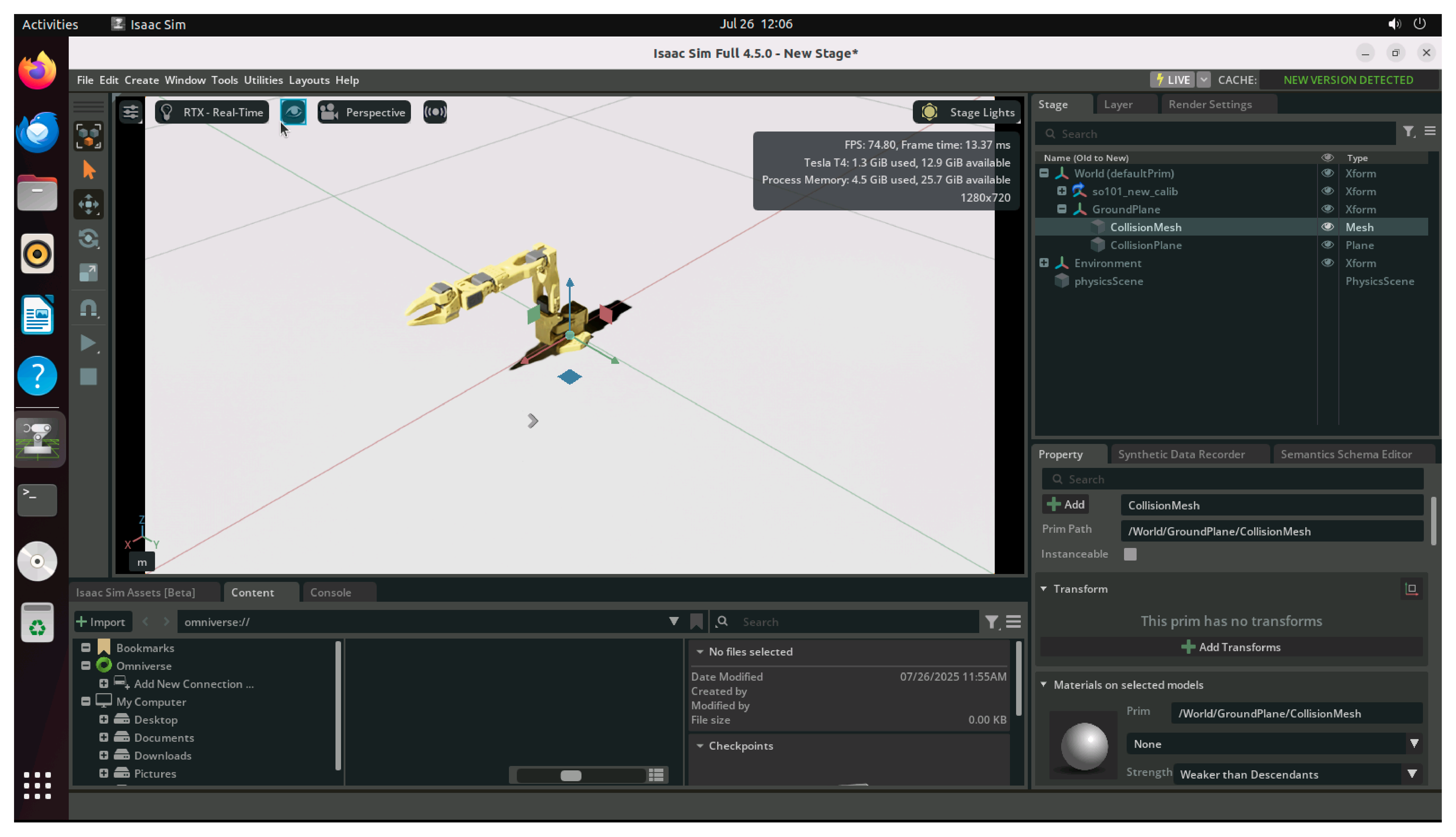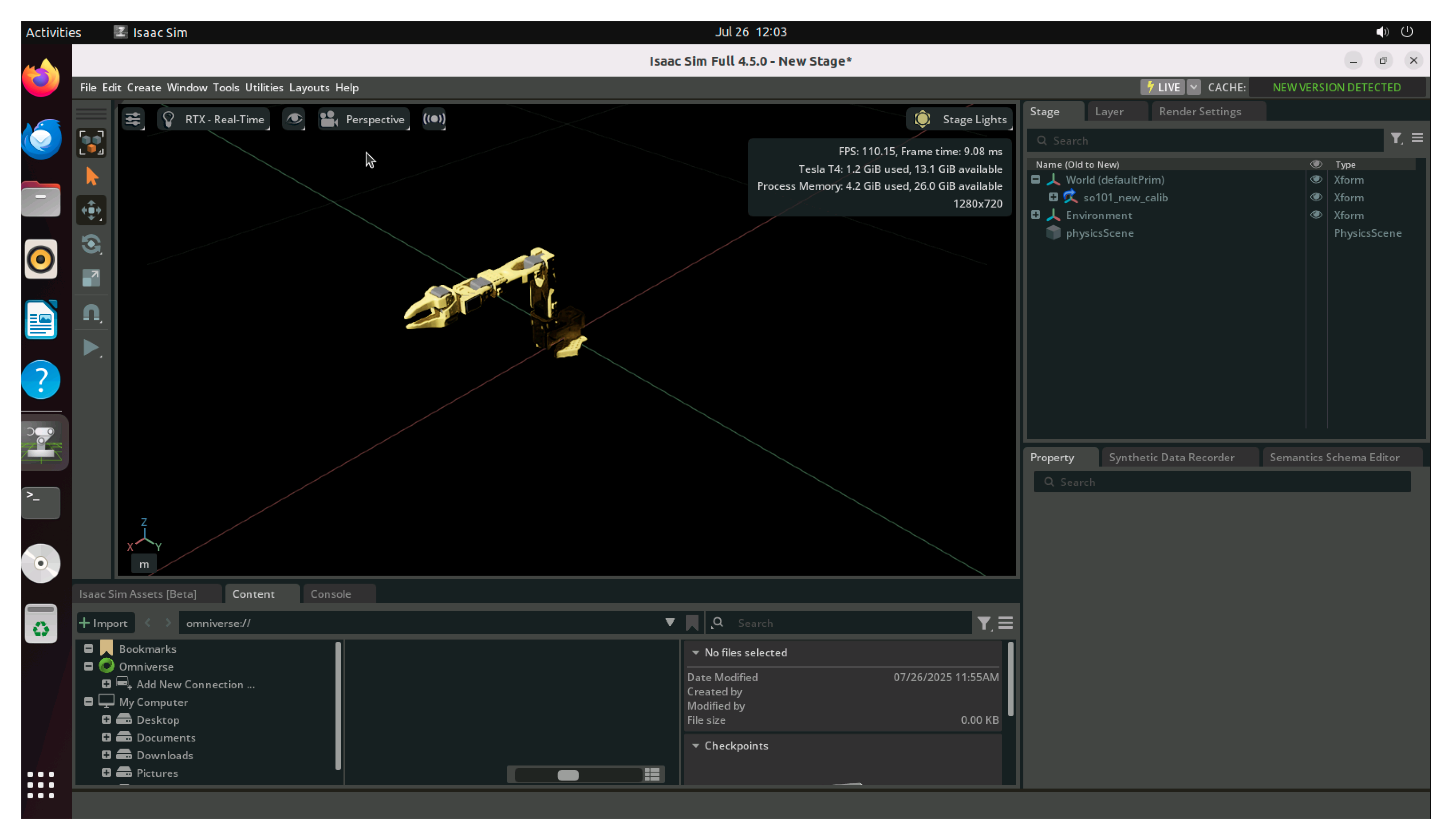 为了解决这个问题,本文就带着大家直接操作 LeRobot 开源项目中 SO-101 机械手臂在 IsaacSim 4.5中的模拟,从导入模型到简单调整参数让SO-101执行简单动作,最后再导入一个 Python 代码,让我们透过键盘针对不同舵机进行操作。一套流程下来大约十来分钟就能完成,这能快速地让新手对 IsaacSim 有基本的体验与了解。