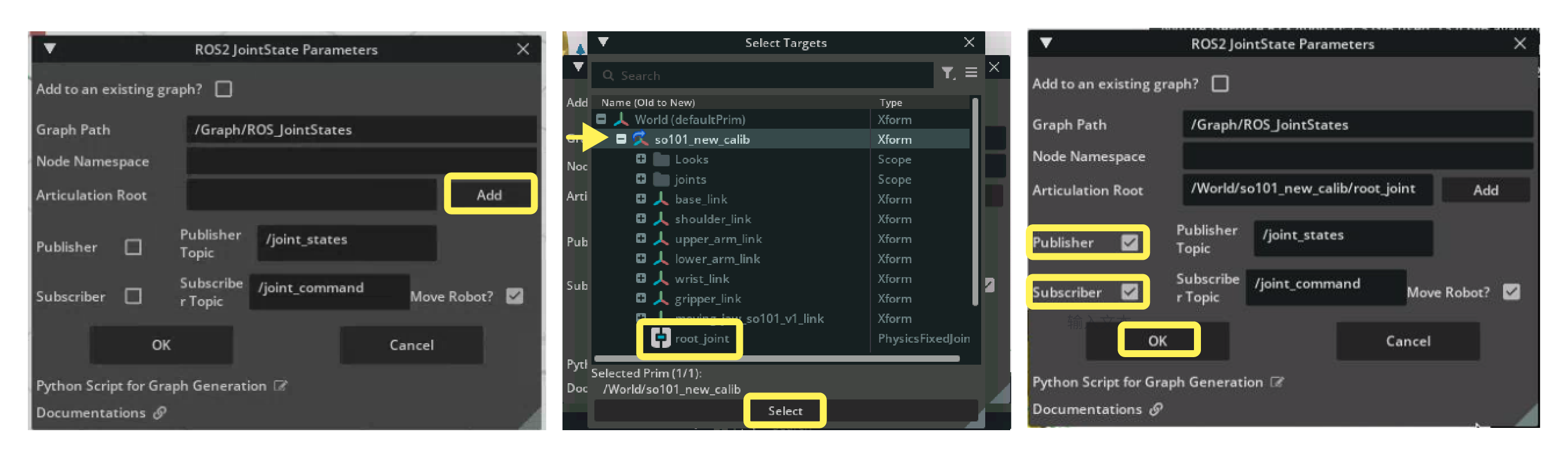 后面的方框选上,最后点击 OK 键这样就完成 Joint_State 的添加。